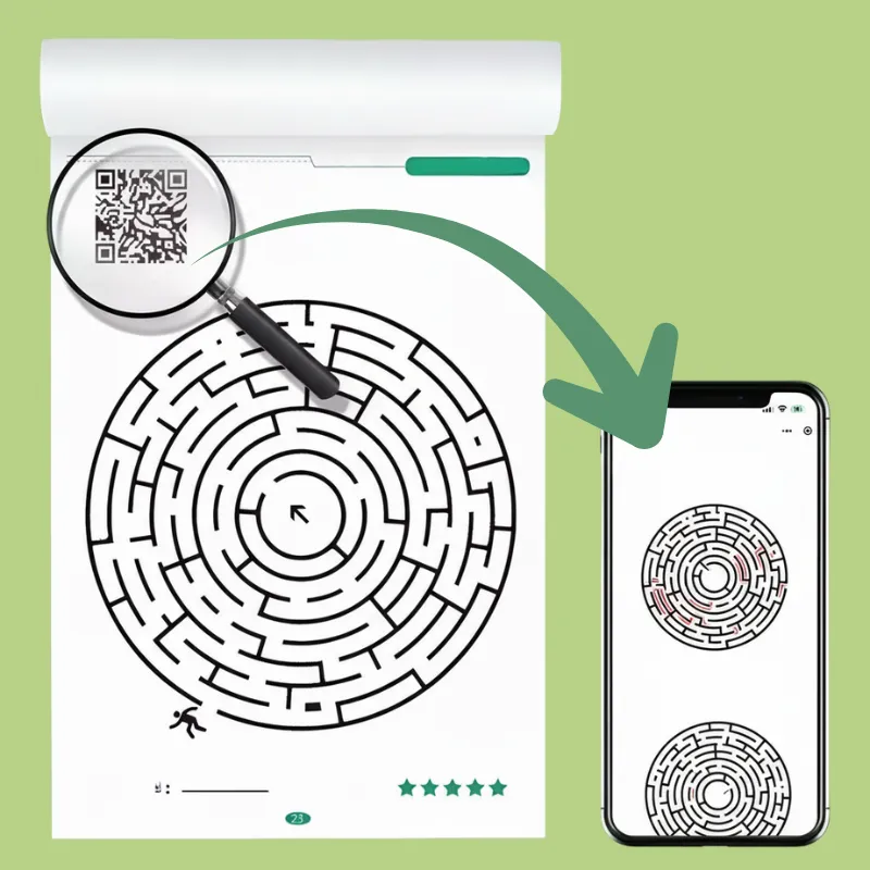 Líbí se mi, že si můžu ověřit odpovědi naskenováním kódu. Pomáhá mi to sledovat, jak se zlepšuji ve vyřešení bludišť sám.