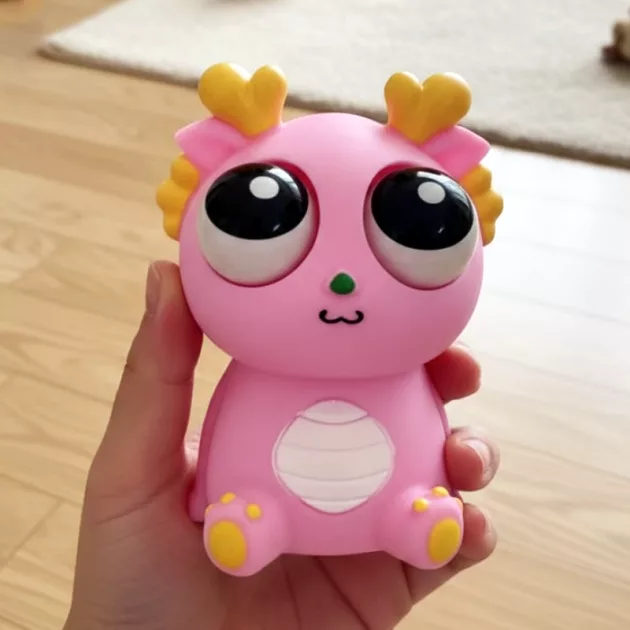 Pop hračka sedí na mém stole a často ji mačkám! Miluji tu jasnou barvu a legrační oči, které vyletí při každém stisknutí.