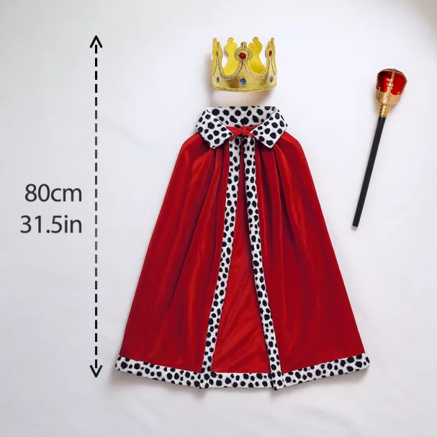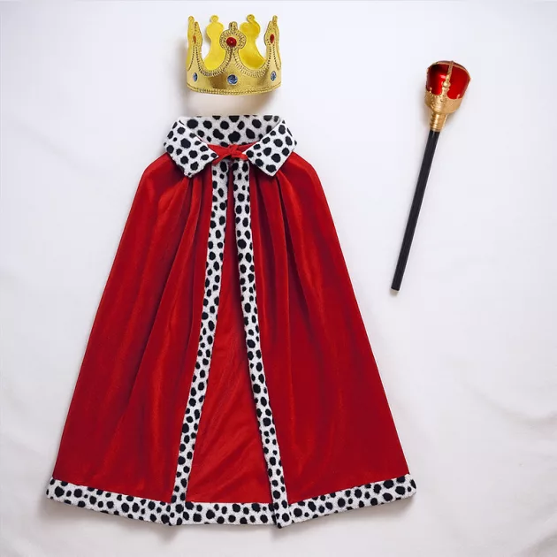 red cape, costume cloak, king red cloak, golden crown, halloween costume