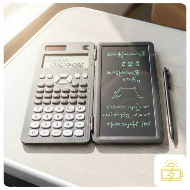 Spolehlivá solární energie - Nemusíte se bát náhlého výpadku proudu během výuky nebo testu. Solární a bateriová záloha zajišťuje hladký chod kalkulačky.