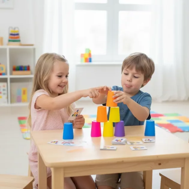Kognitivní rozvoj - Děti řeší úkoly skládáním barev a vzorů. Každé kolo posiluje jejich pozornost, paměť a logické myšlení.