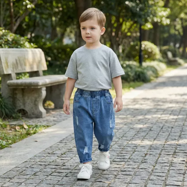 Celodenní pohodlí - Měkký elastický pas zajišťuje rychlé oblékání každé ráno. Prodyšný denim udrží dětské nohy v chladu během náročných aktivit.