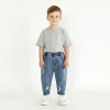 Stylové dětské riflové cargo kalhoty s širokými nohavicemi a odřeným vzhledem