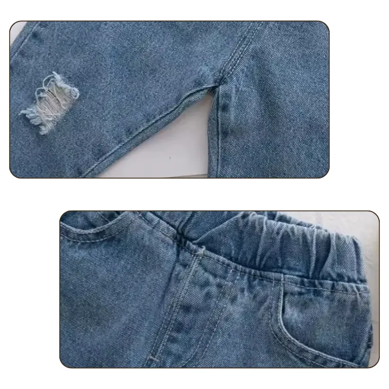Stylové dětské riflové cargo kalhoty s širokými nohavicemi a odřeným vzhledem