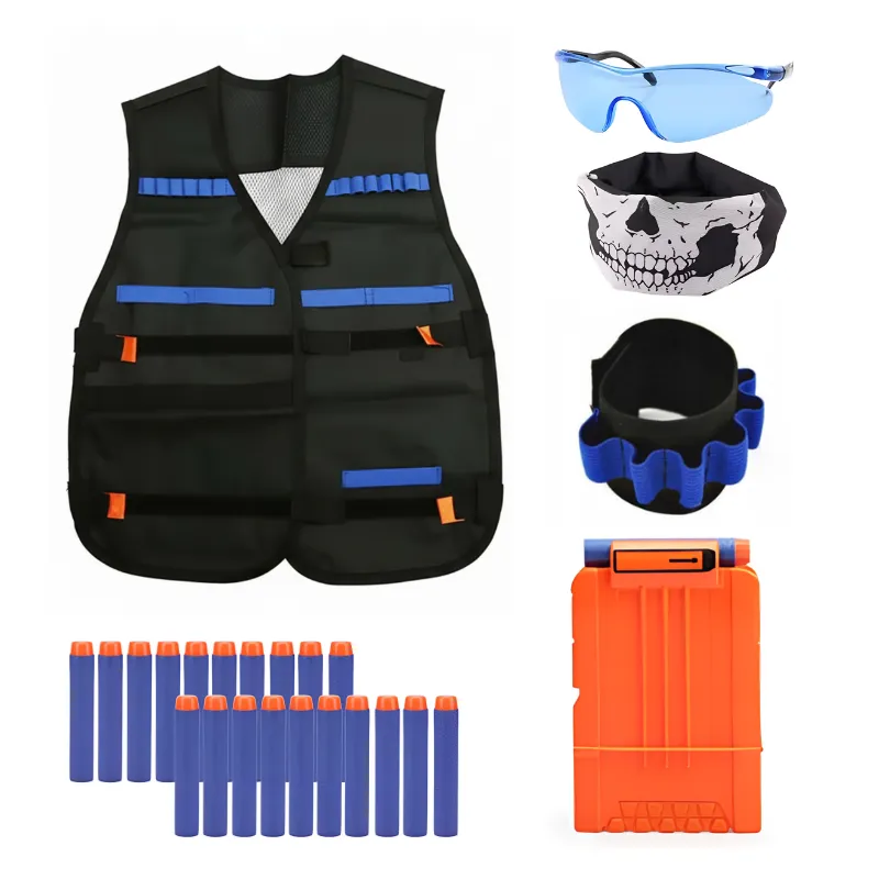 Teď už nikdy nezapomenu, kde mám náboje! S touto sadou si připadám jako opravdový dobrodruh a rodiče oceňují, že mi chrání obličej při hrách.