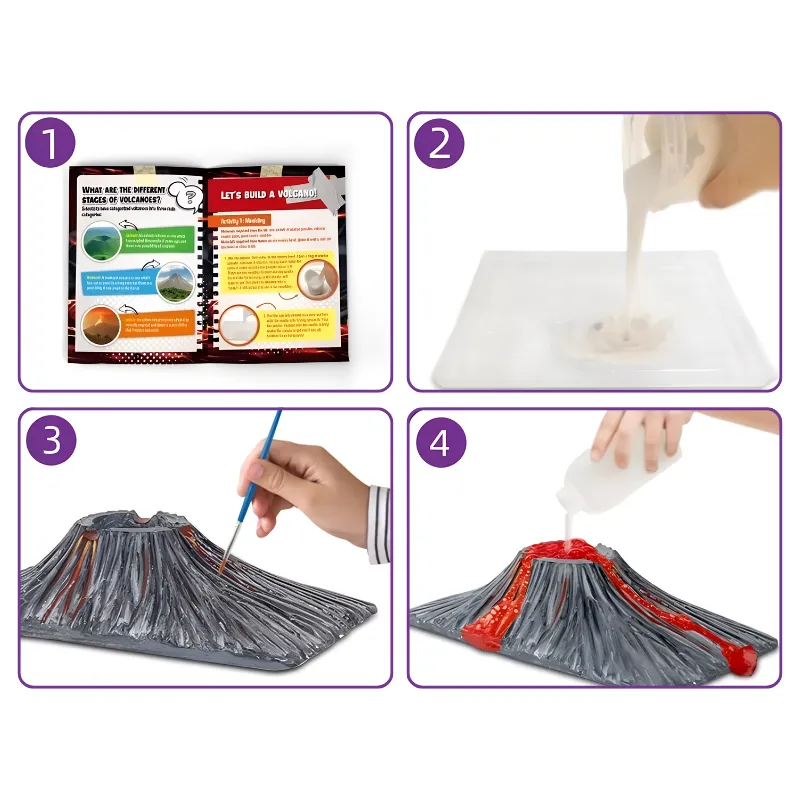 Realistické erupce - Oživte dramatické exploze pomocí bezpečných materiálů při každém pokusu. Děti jsou ohromeny, když z jejich vlastního vulkánu vybuchují zářivé barvy.