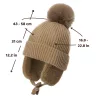 Zimní pletená čepice s klapkami na uši a bambulí pro děti