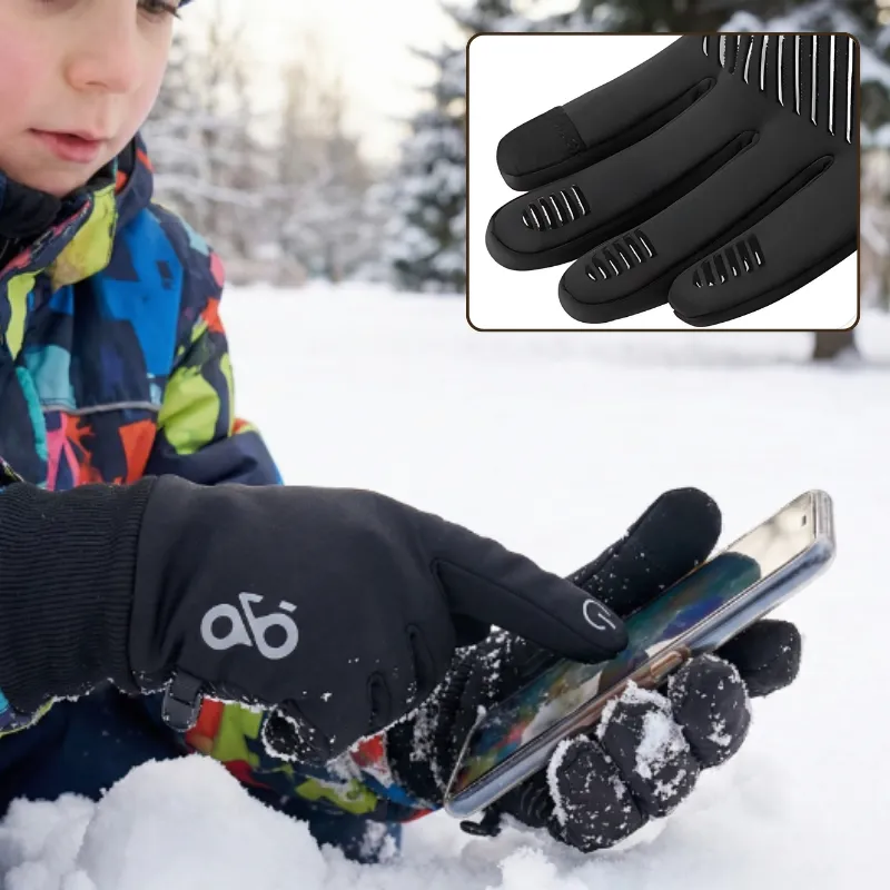 Zimní voděodolné zateplené protiskluzové rukavice s dotykovými prsty pro děti