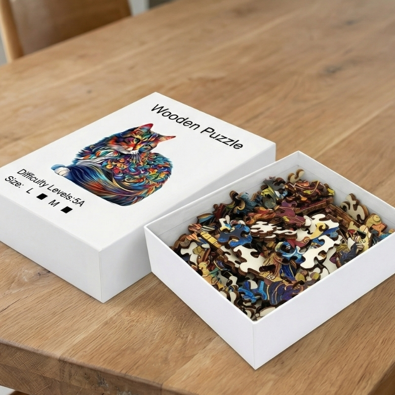 Dřevěné puzzle kočka