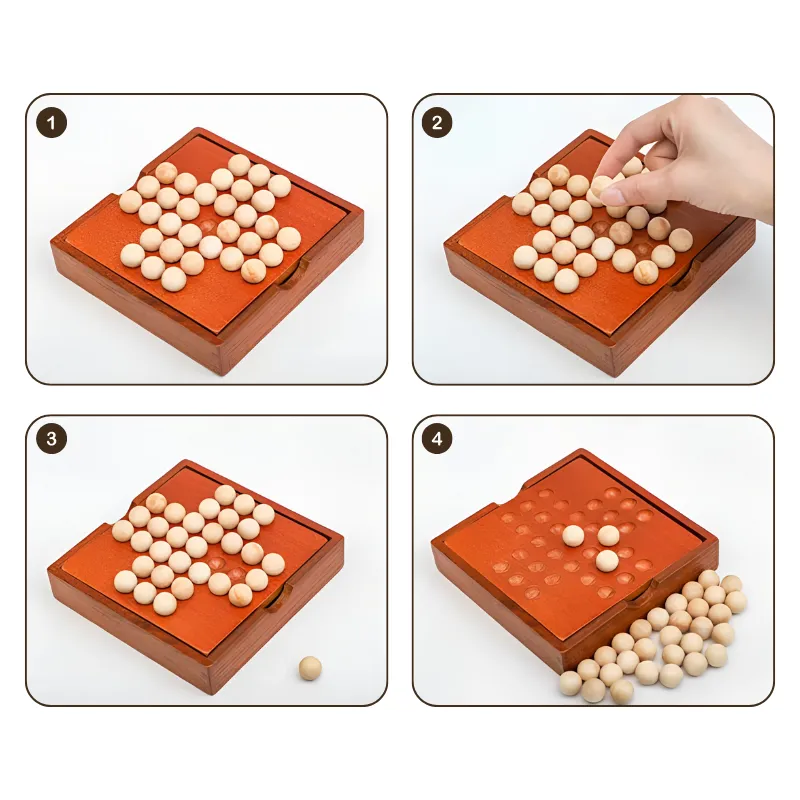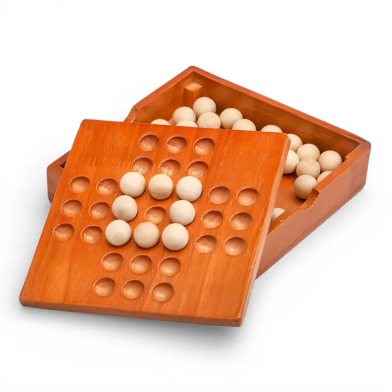 Dřevěná solitérní pegy – zábavná desková hra pro rodinu