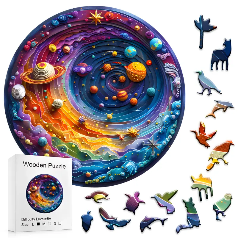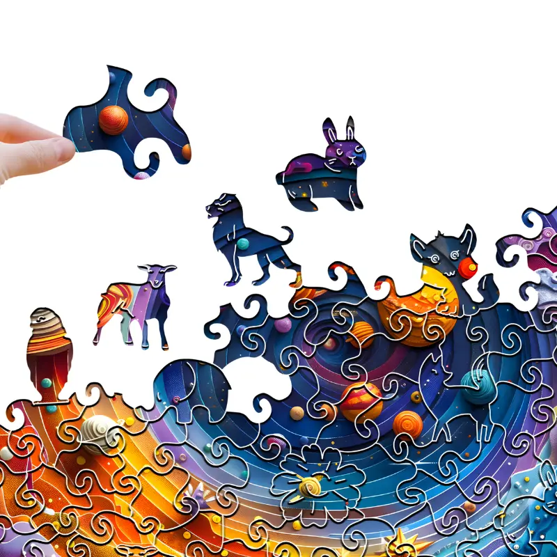 Děti mohou prozkoumávat galaxie a hvězdy skládáním tohoto pestrého puzzle. Každý dílek přináší novou výzvu, což dělá čas na hraní zábavným a obohacujícím. Složité tvary rozvíjejí soustředění a probouzejí nekonečnou zvědavost doma. Rodiče si užívají kvalitní společné chvíle s vědomím, že každá hra podporuje rozvoj dětské mysli.