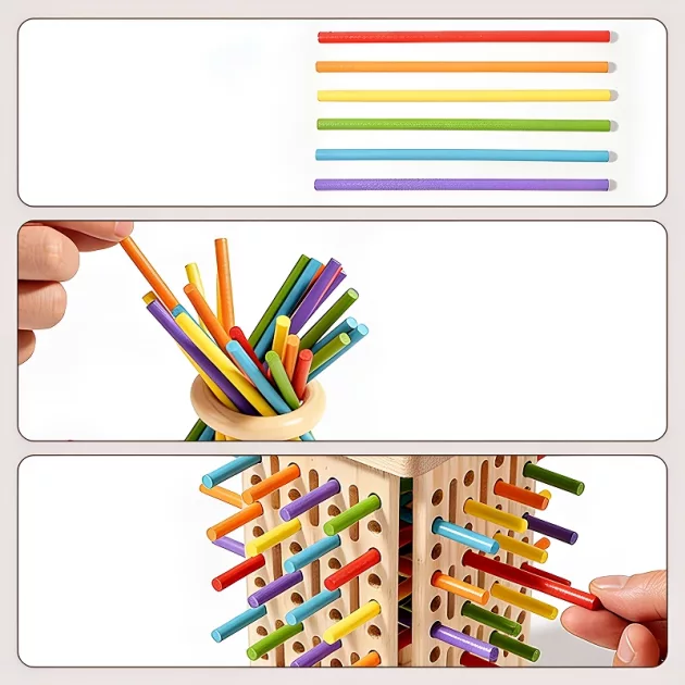 Děti milují nové výzvy a přátelské hry vyvolávají smích. Tato hra s věží z dřevěných tyček podporuje soustředění a šikovné ruce v každém kole. Každý tah přináší barevnou zábavu, vyzývá ke spolupráci a přátelské soutěživosti. Učení v rodině doma je s touto hrou jednoduché a pohodové.
