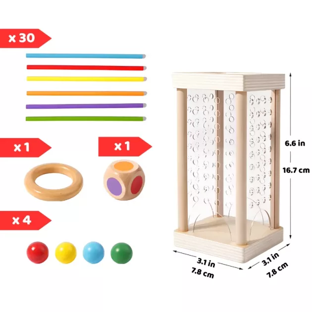 Jasné barvy a chytré výzvy spojí všechny dohromady ke smíchu. Dovednosti se rozvíjejí, když ruce pracují, mysl přemýšlí a vznikají strategie. Užijte si napínavá kola a sledujte, jak roste týmová spolupráce při zábavě. Tato hra s taháním dřevěných tyček udrží každé setkání čerstvé novými možnostmi hry.