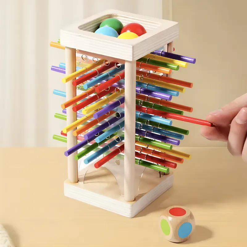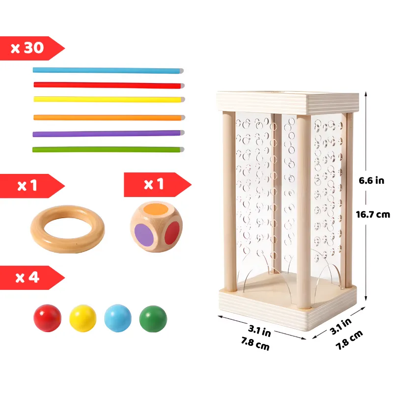 Jasné barvy a chytré výzvy spojí všechny dohromady ke smíchu. Dovednosti se rozvíjejí, když ruce pracují, mysl přemýšlí a vznikají strategie. Užijte si napínavá kola a sledujte, jak roste týmová spolupráce při zábavě. Tato hra s taháním dřevěných tyček udrží každé setkání čerstvé novými možnostmi hry.