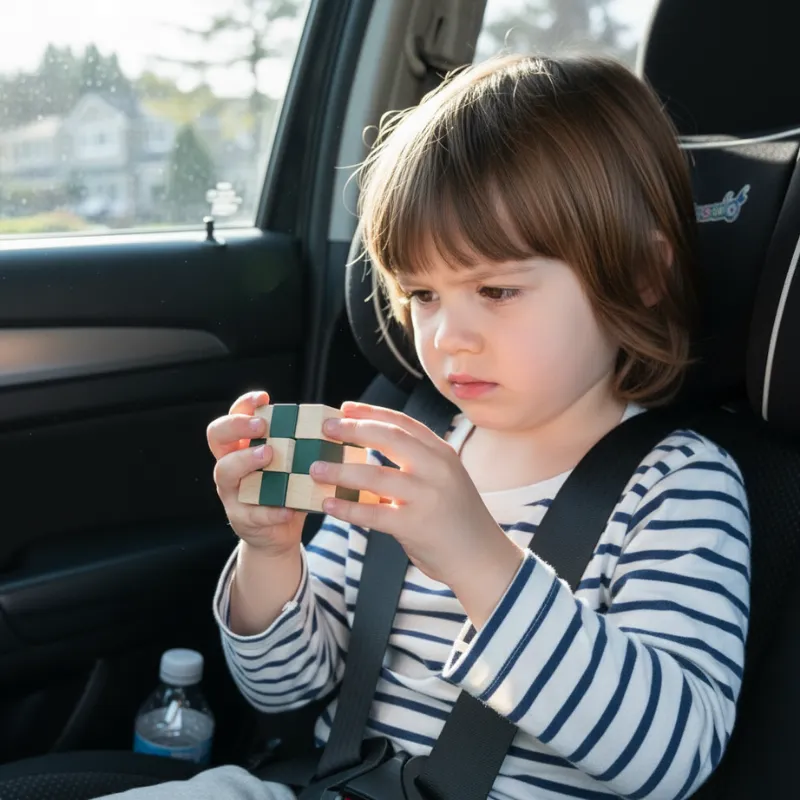 Vzali jsme hlavolam na cestu autem. Oba moji synové si ho předávali a střídali se ve skládání různých vzorů.