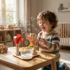 STEM objevování - Děti vidí, jak věda funguje při sestavování modelu. Pojmy se stávají jasnými prostřednictvím hraní, což podněcuje jejich přirozené otázky.